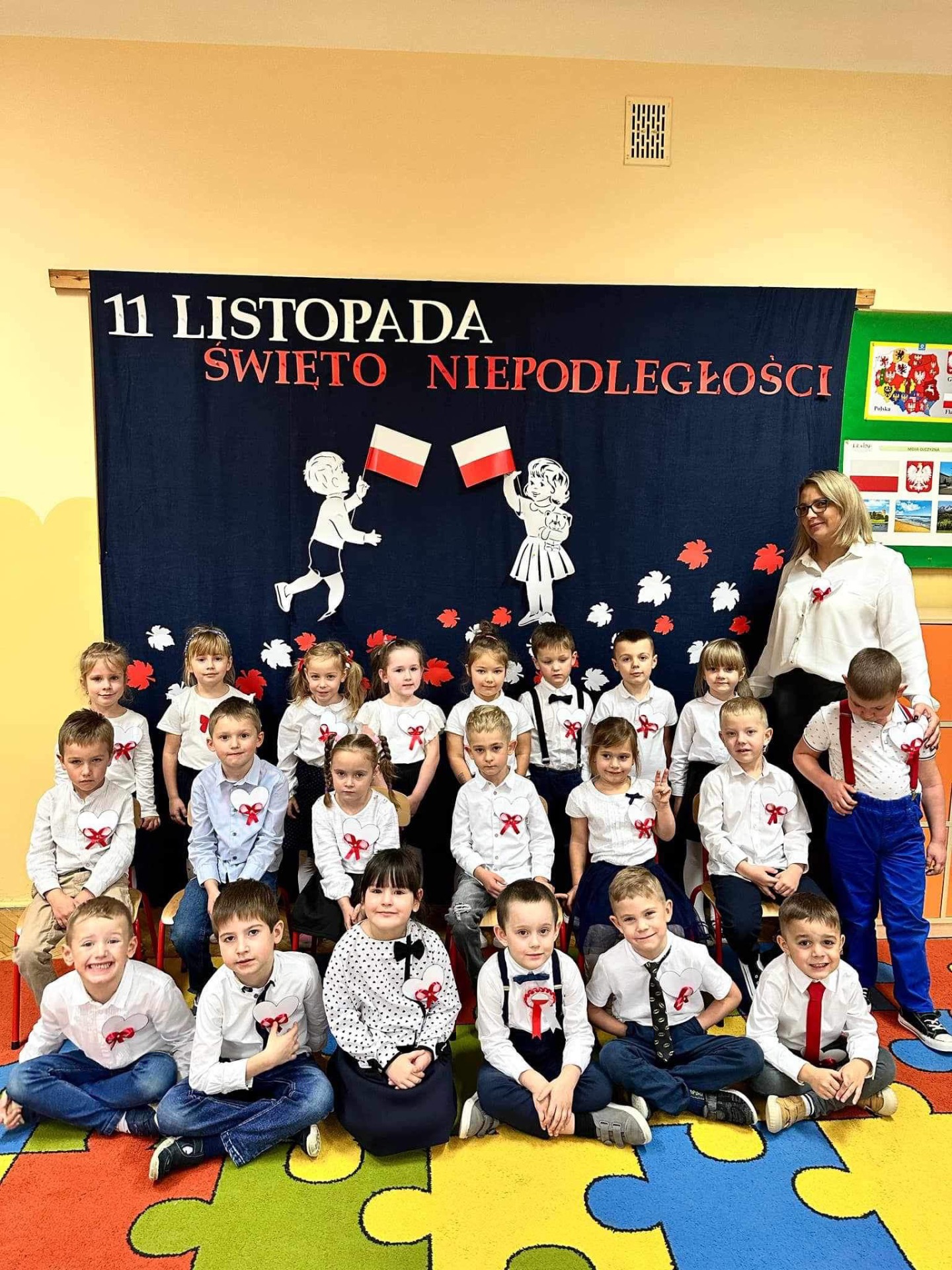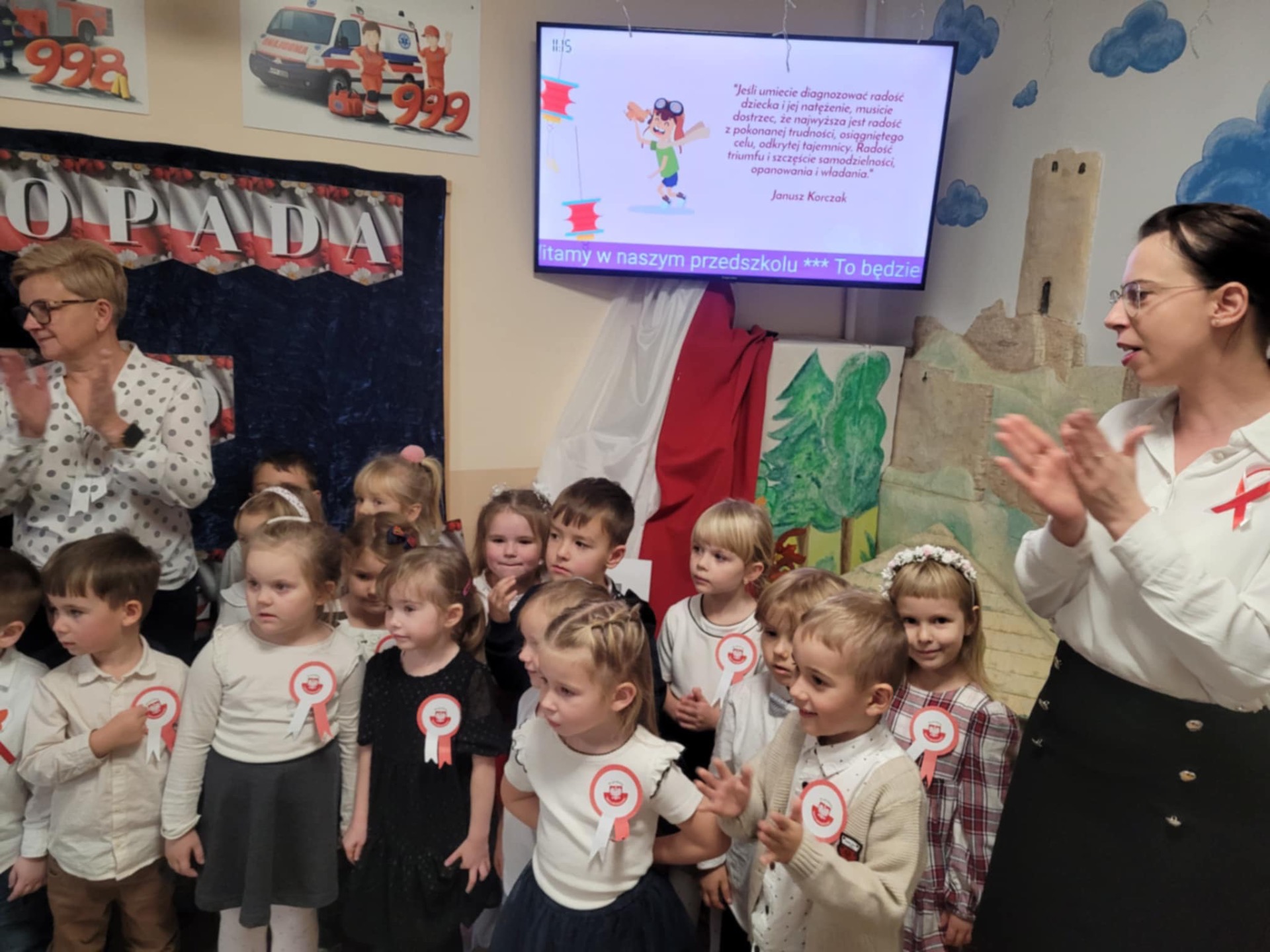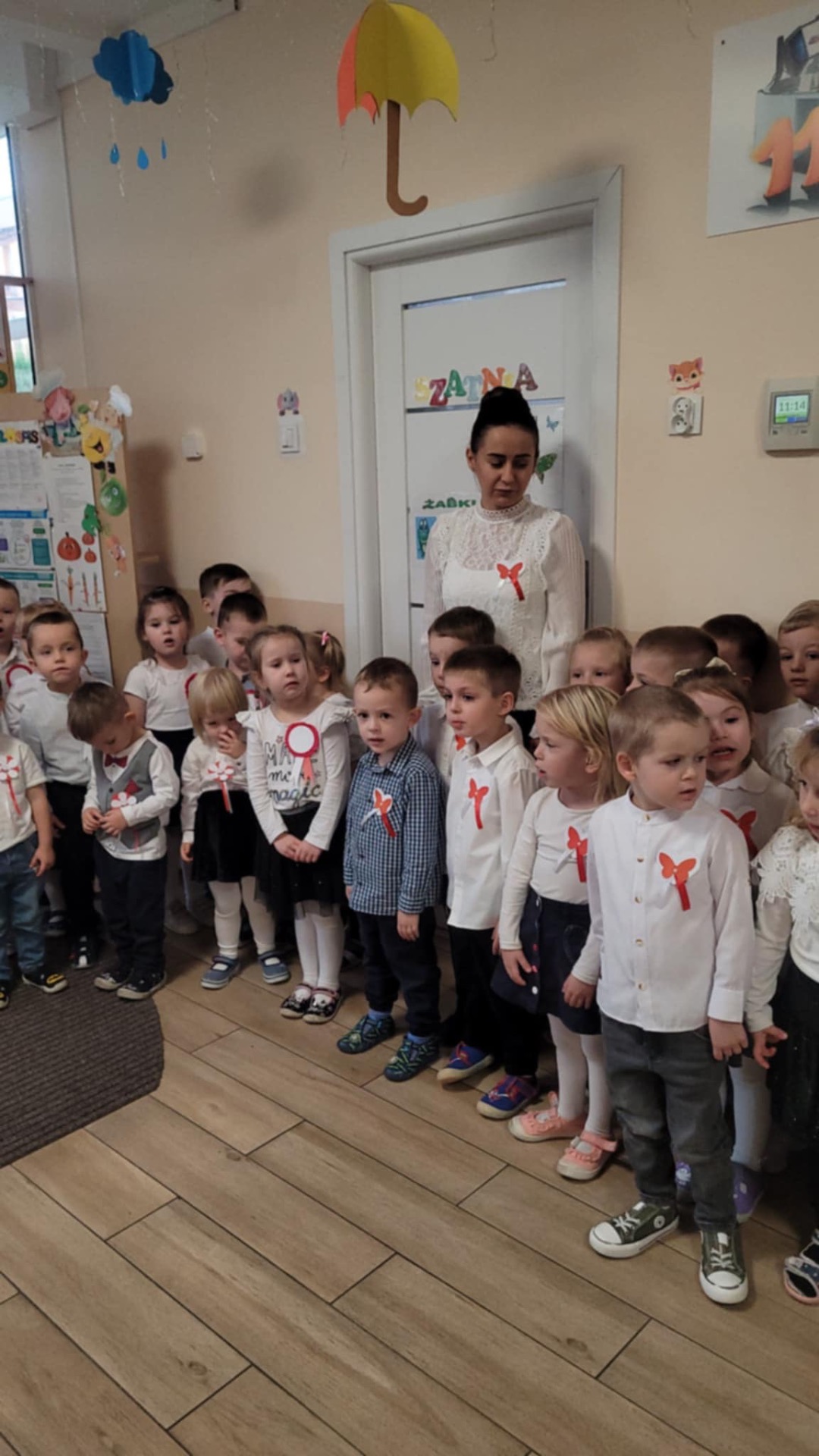 Już po raz kolejny przedszkolaki z Samorządowego Przedszkola w Iłży uczestniczyły w akcji Ministerstwa Edukacji i Nauki – „Szkoła do hymnu”. W piątek 8 listopada o symbolicznej godz. 11.11. uroczyście odśpiewały hymn narodowy „Mazurek Dąbrowskiego”. Jak co roku była to podniosła i bardzo uroczysta chwila. Celem akcji jest zachęcenie młodego pokolenia Polaków do wspólnego przeżywania Święta Niepodległości oraz kształtowanie postawy patriotycznej. Od najmłodszych lat dzieci zapoznają się w ramach zajęć i zabaw edukacyjnych z mapą Polski, historią naszego kraju, wybranymi legendami, zabytkami, znanymi Polakami, itd. Barwy ojczyste, flagę i godło rozpoznają już najmłodsi. Udział w akcji wzmacnia poczucie przynależności narodowej i jest wyrazem naszego szacunku wobec symboli narodowych. Serdeczne wszystkim dziękujemy za piękny i dumny udział w tegorocznej akcji.