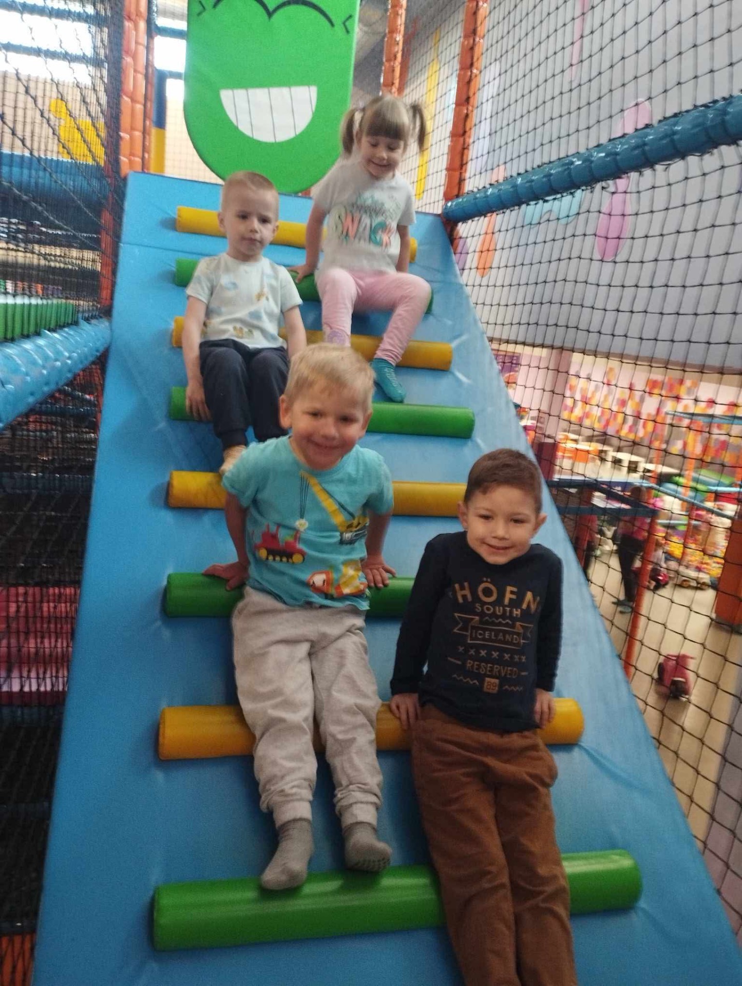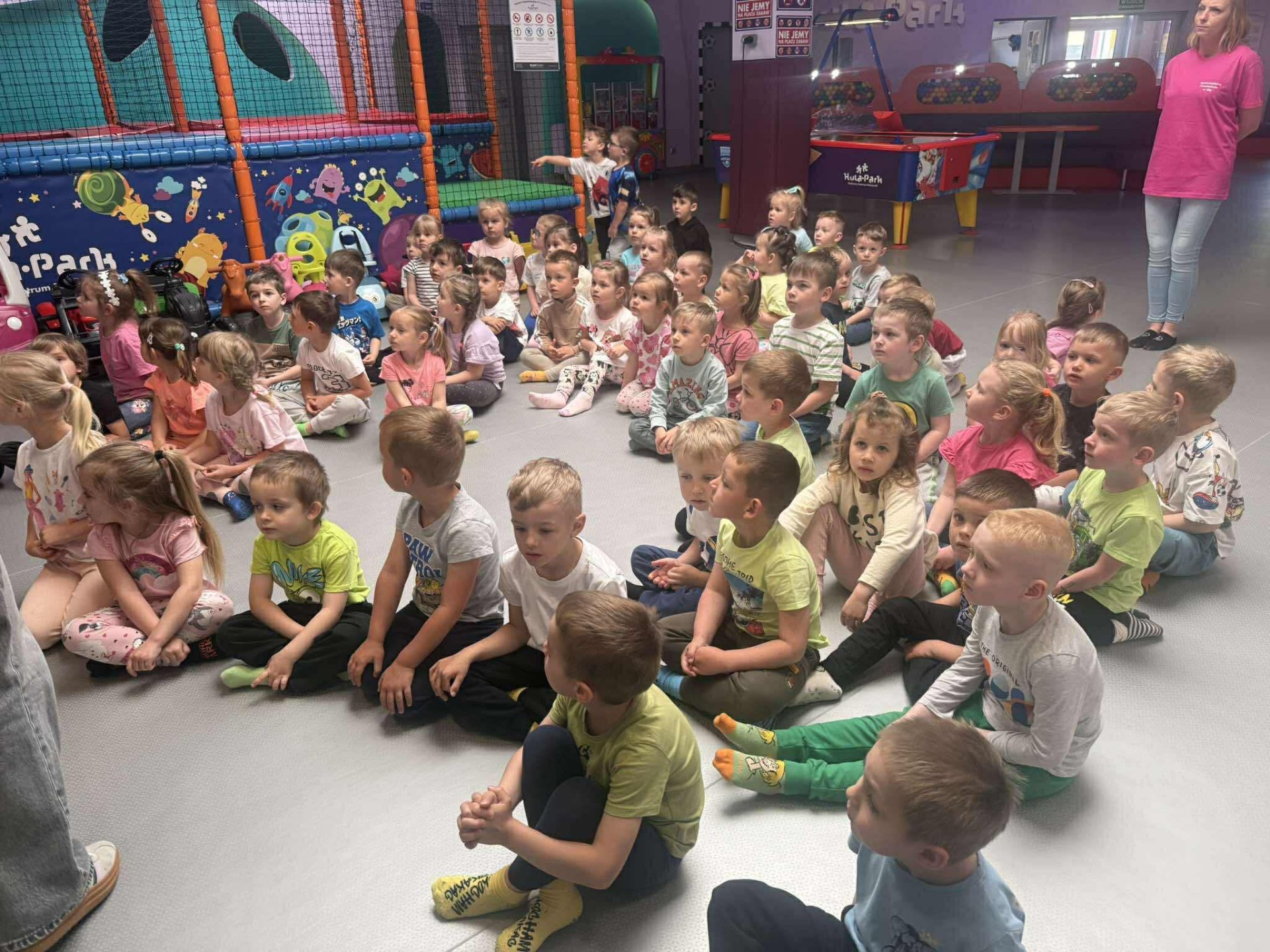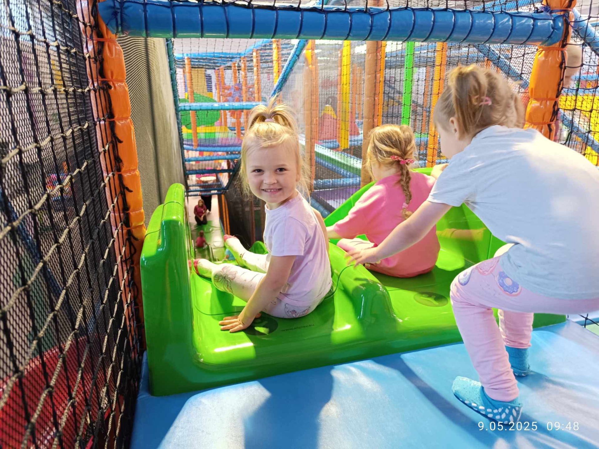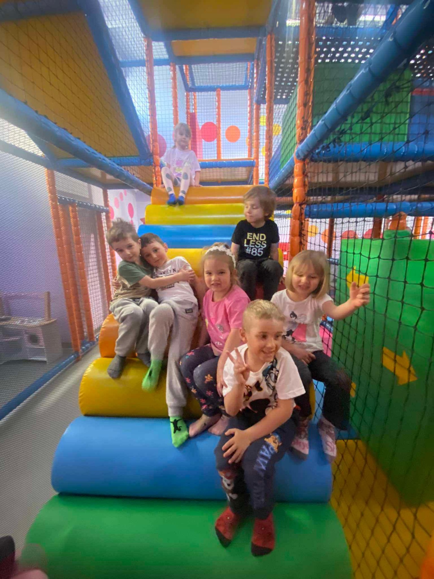 Na miejscu czekało na nas mnóstwo atrakcji: kolorowe zjeżdżalnie, baseny z piłeczkami, tory przeszkód, trampoliny i wiele innych niespodzianek. Dzieci bawiły się wspaniale, rozwijając swoją sprawność fizyczną, koordynację ruchową oraz współpracę z rówieśnikami.Po intensywnej zabawie przyszedł czas na chwilę odpoczynku. Uśmiechy na twarzach i błysk w oczach naszych przedszkolaków były najlepszym dowodem na to, jak bardzo spodobał im się ten dzień.