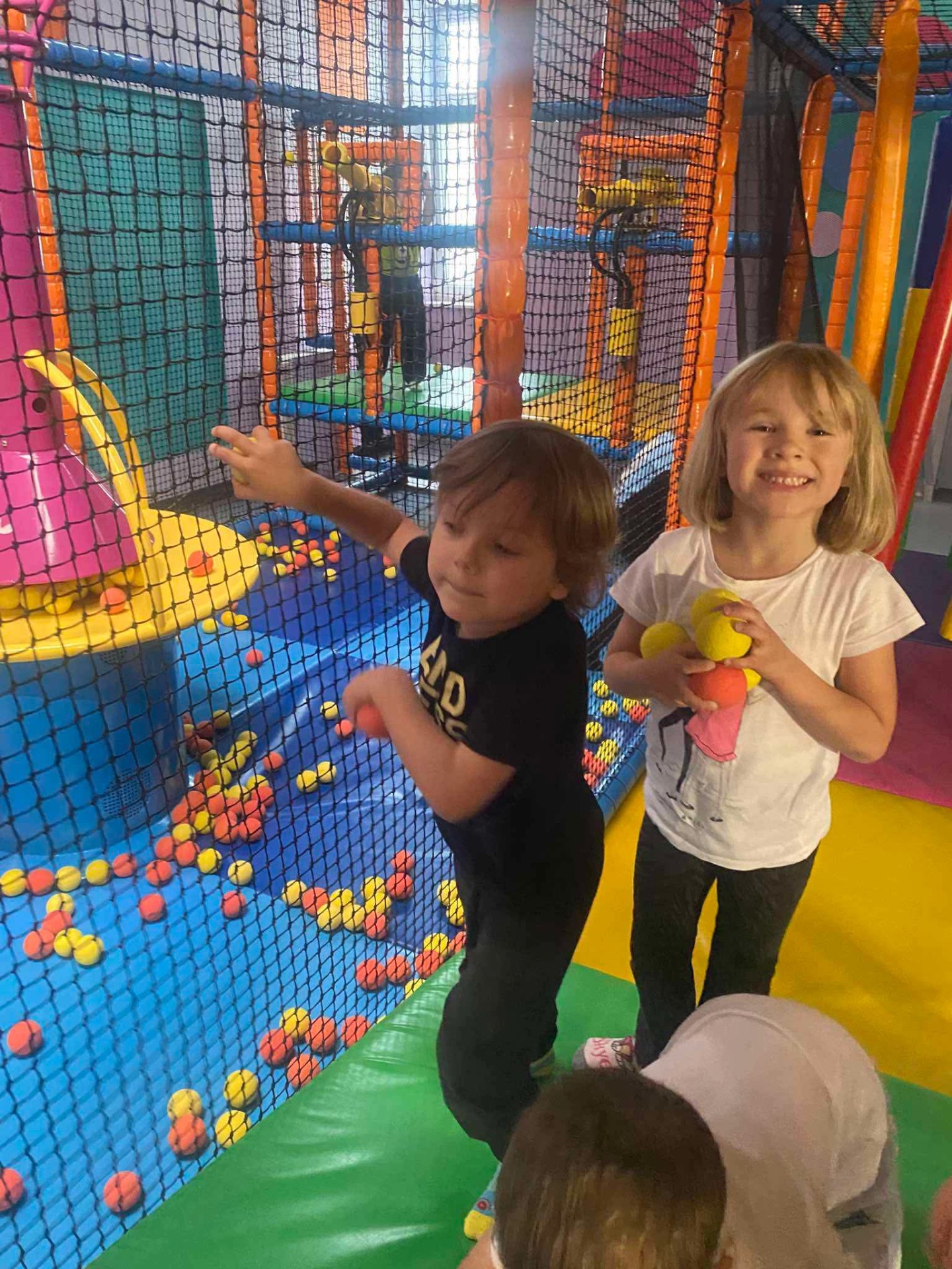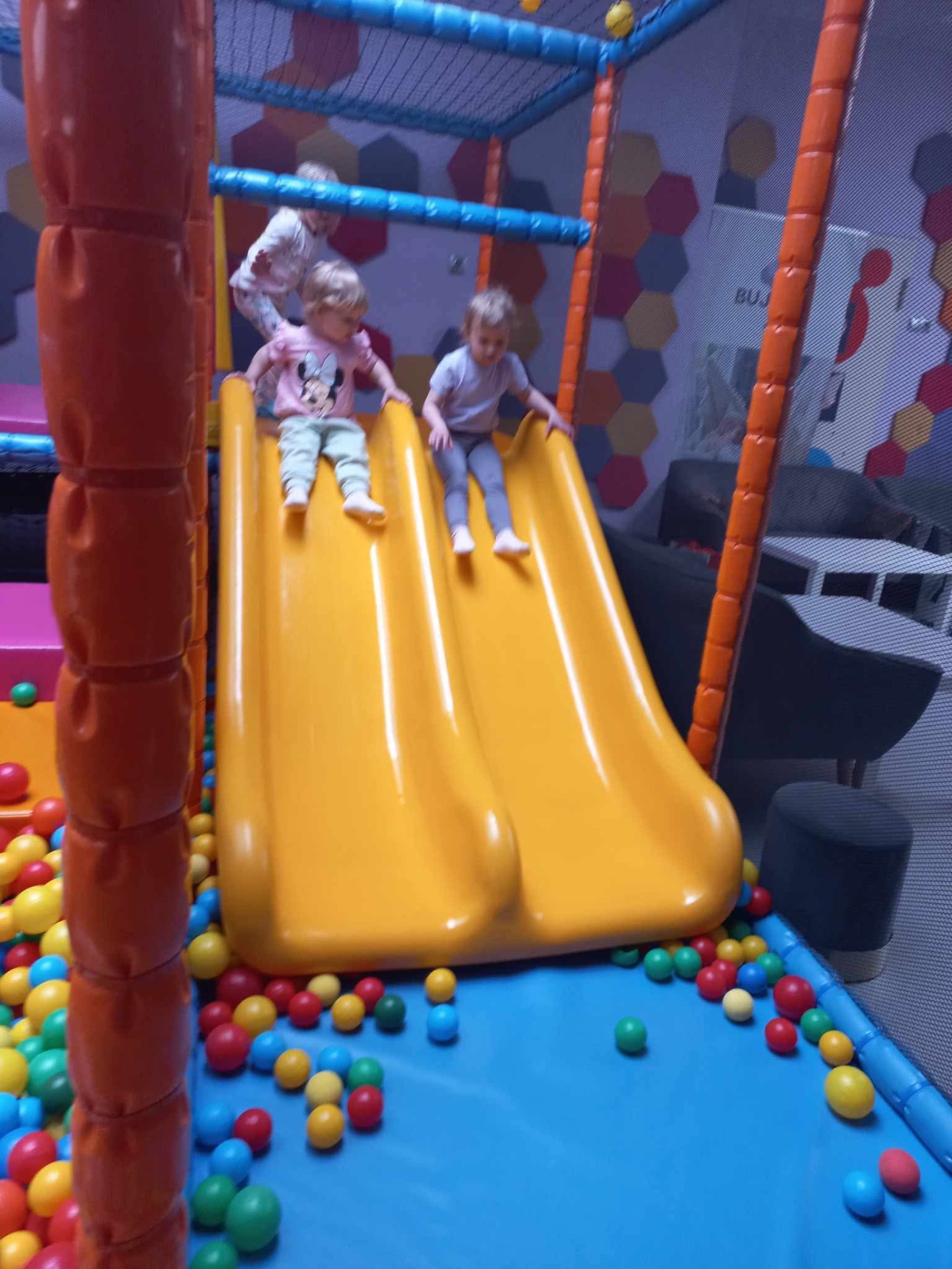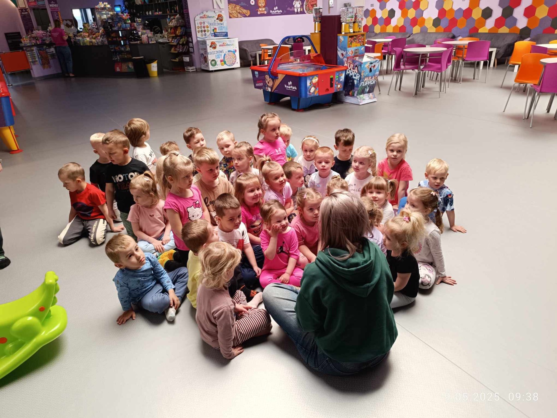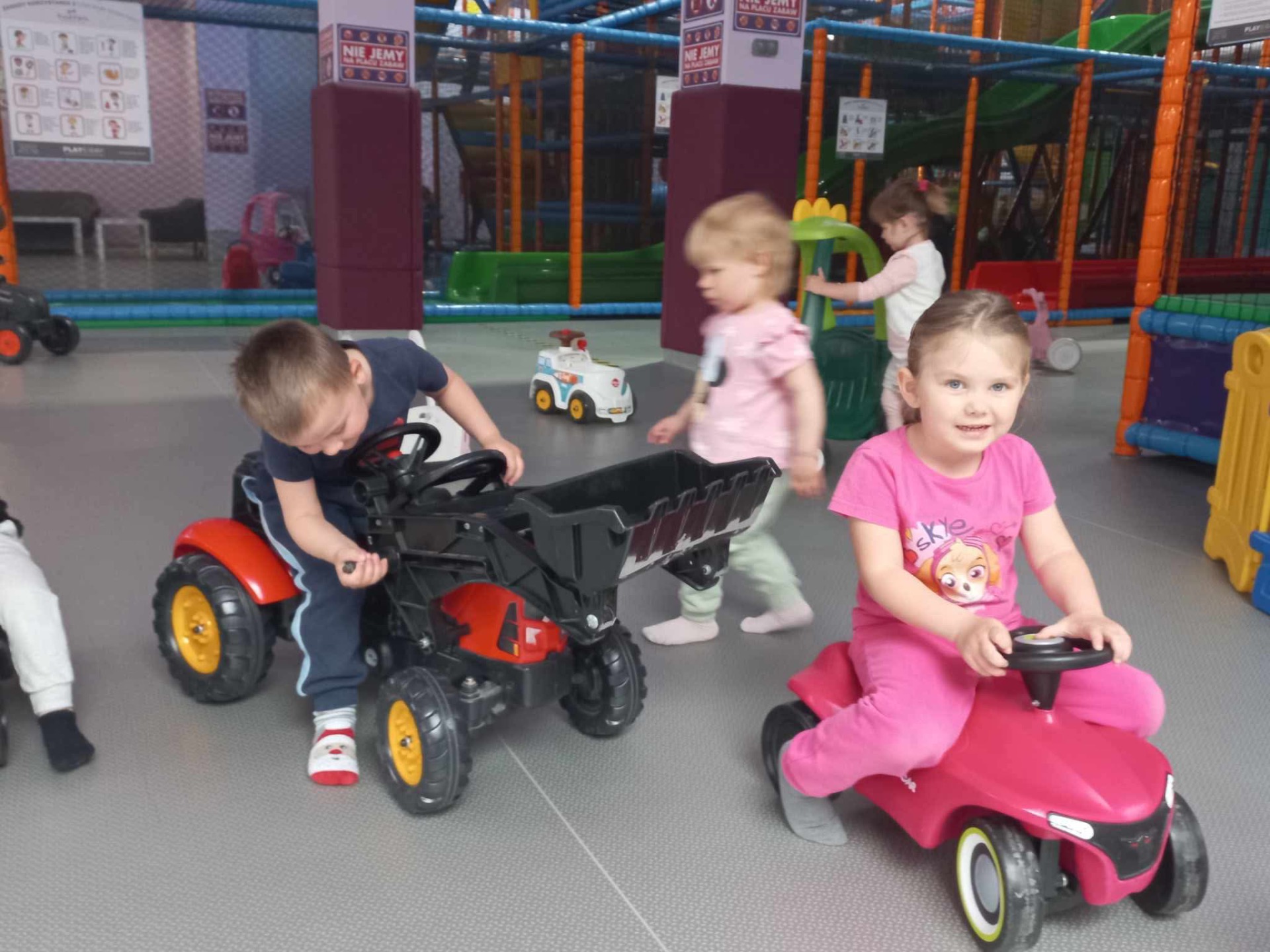 Na miejscu czekało na nas mnóstwo atrakcji: kolorowe zjeżdżalnie, baseny z piłeczkami, tory przeszkód, trampoliny i wiele innych niespodzianek. Dzieci bawiły się wspaniale, rozwijając swoją sprawność fizyczną, koordynację ruchową oraz współpracę z rówieśnikami.Po intensywnej zabawie przyszedł czas na chwilę odpoczynku. Uśmiechy na twarzach i błysk w oczach naszych przedszkolaków były najlepszym dowodem na to, jak bardzo spodobał im się ten dzień.