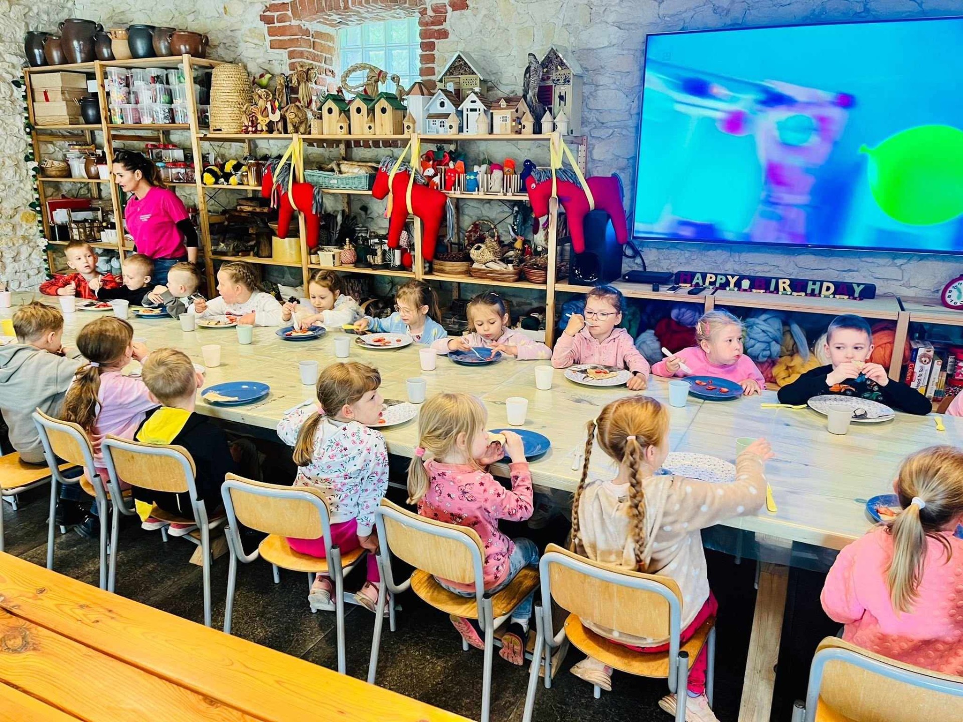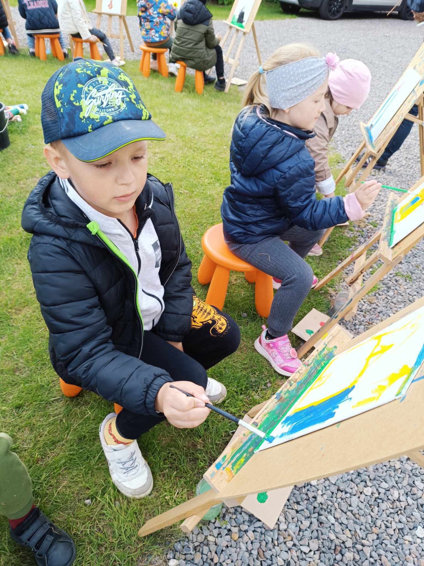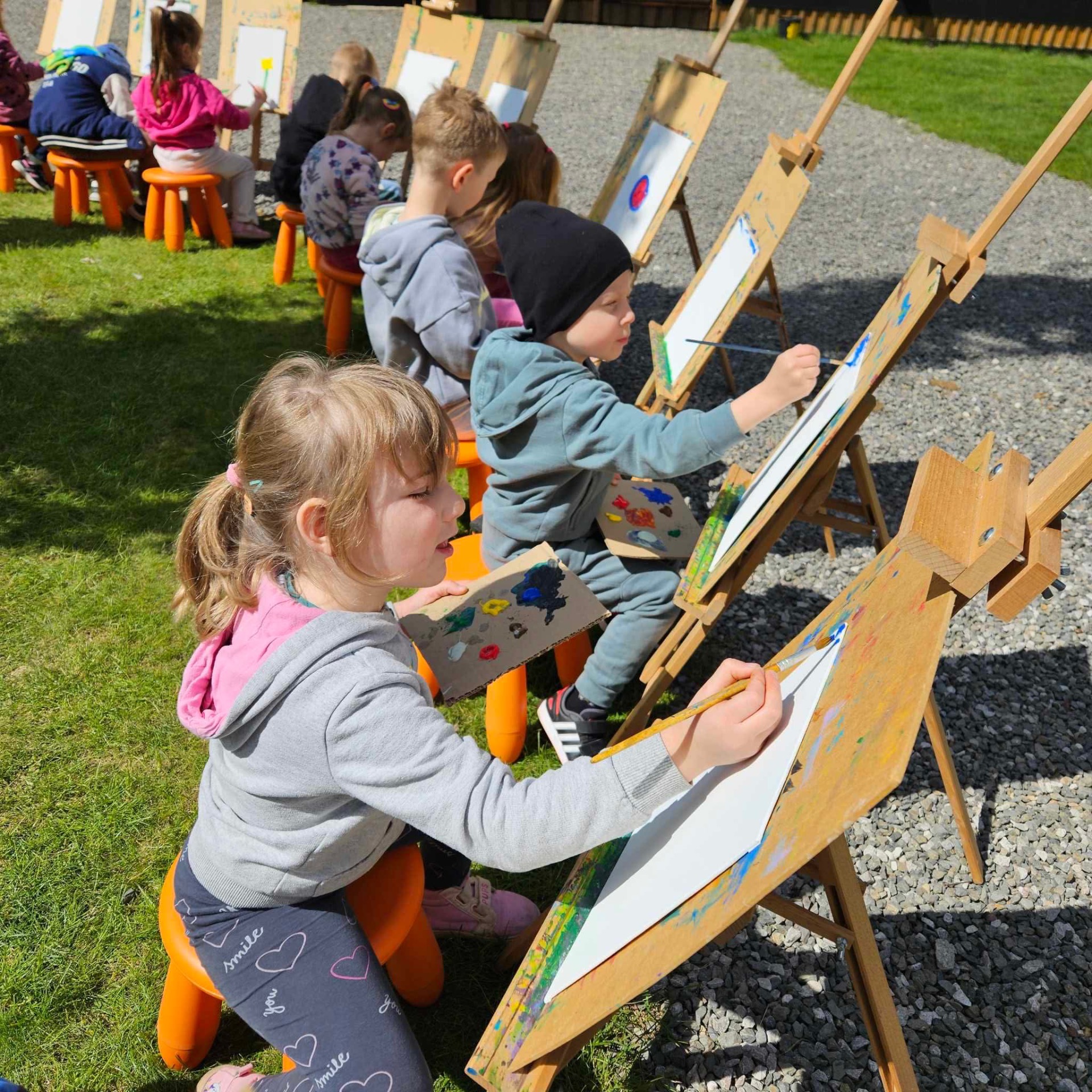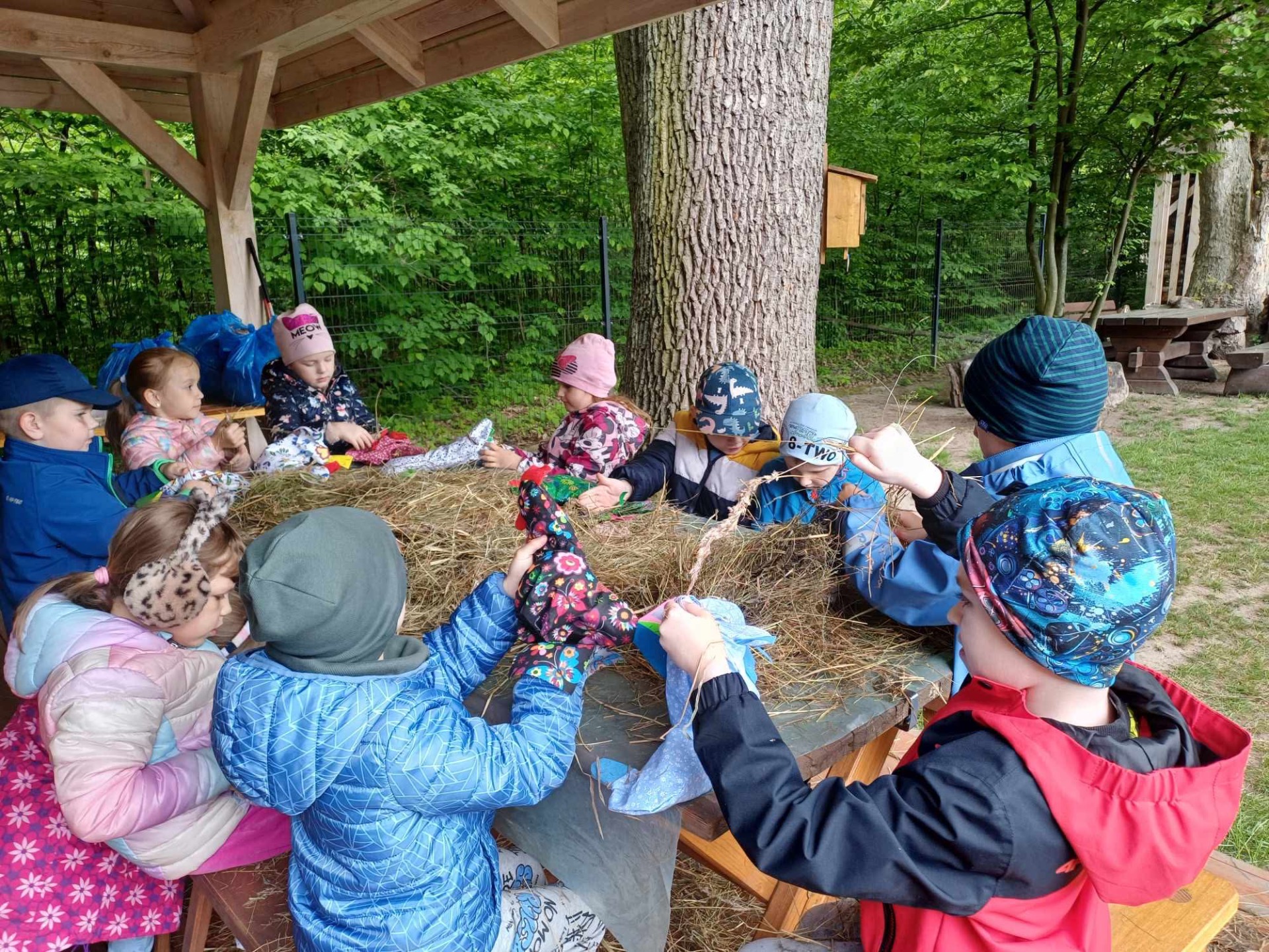 W ramach zajęć edukacyjnych przedszkolaki uczestniczyły także w warsztatach „Zabawka pachnąca sianem”. Dzieci z dużym zaangażowaniem wypychały zabawkę sianem oraz ozdabiały swoją pracę. Miały również możliwość uczestniczenia w plenerze malarskim i zabawach w ogródkach aktywnych.