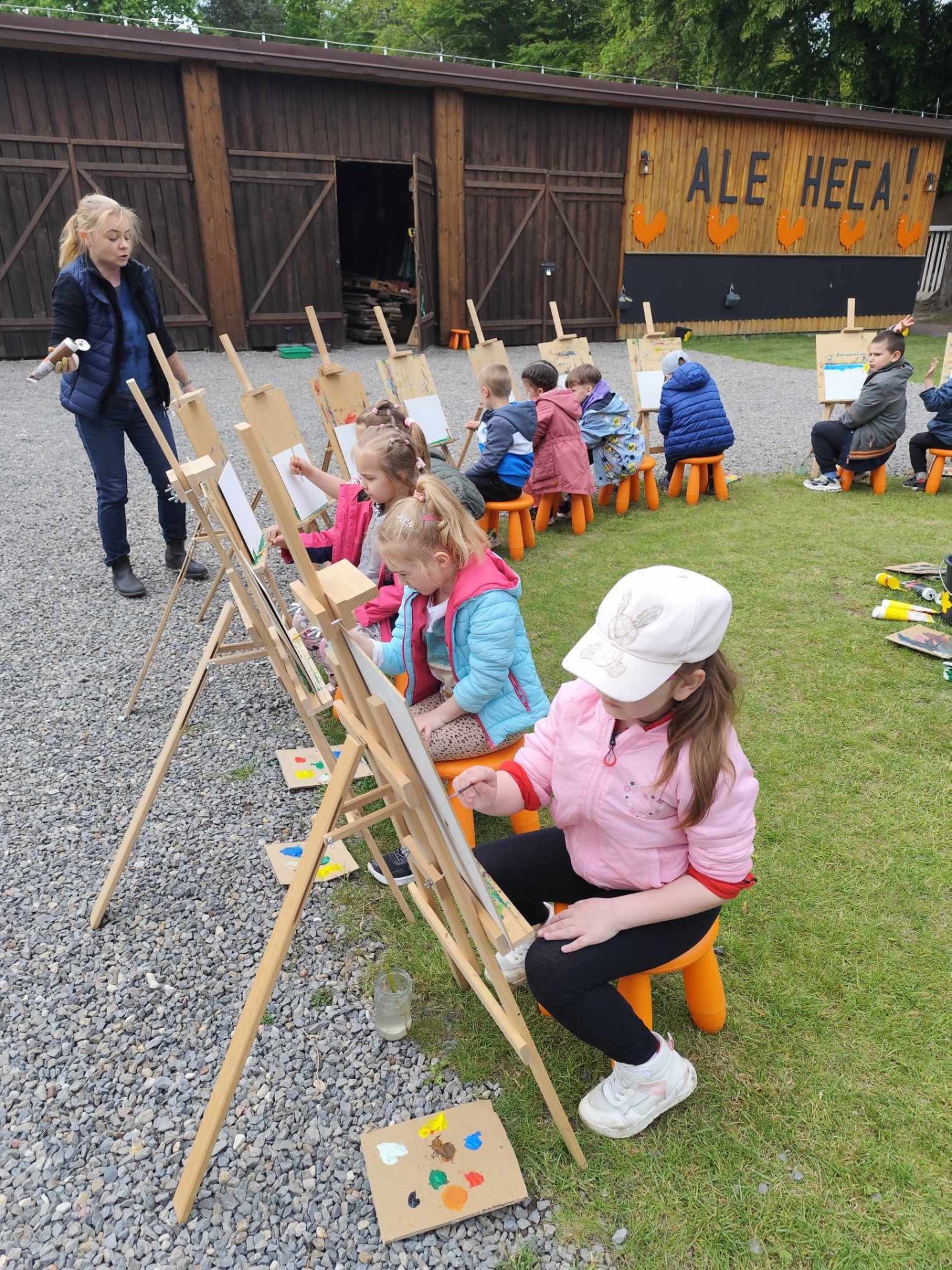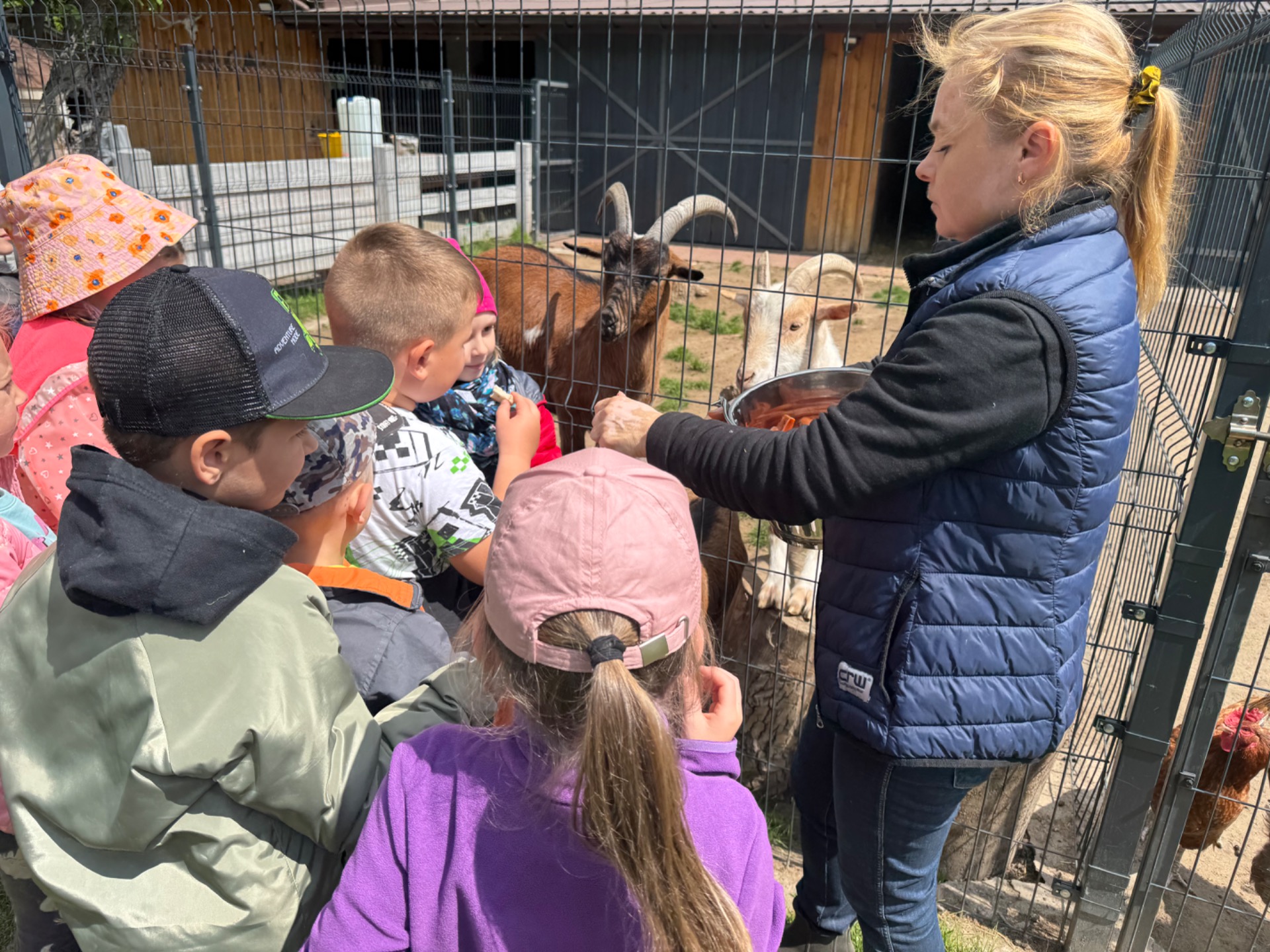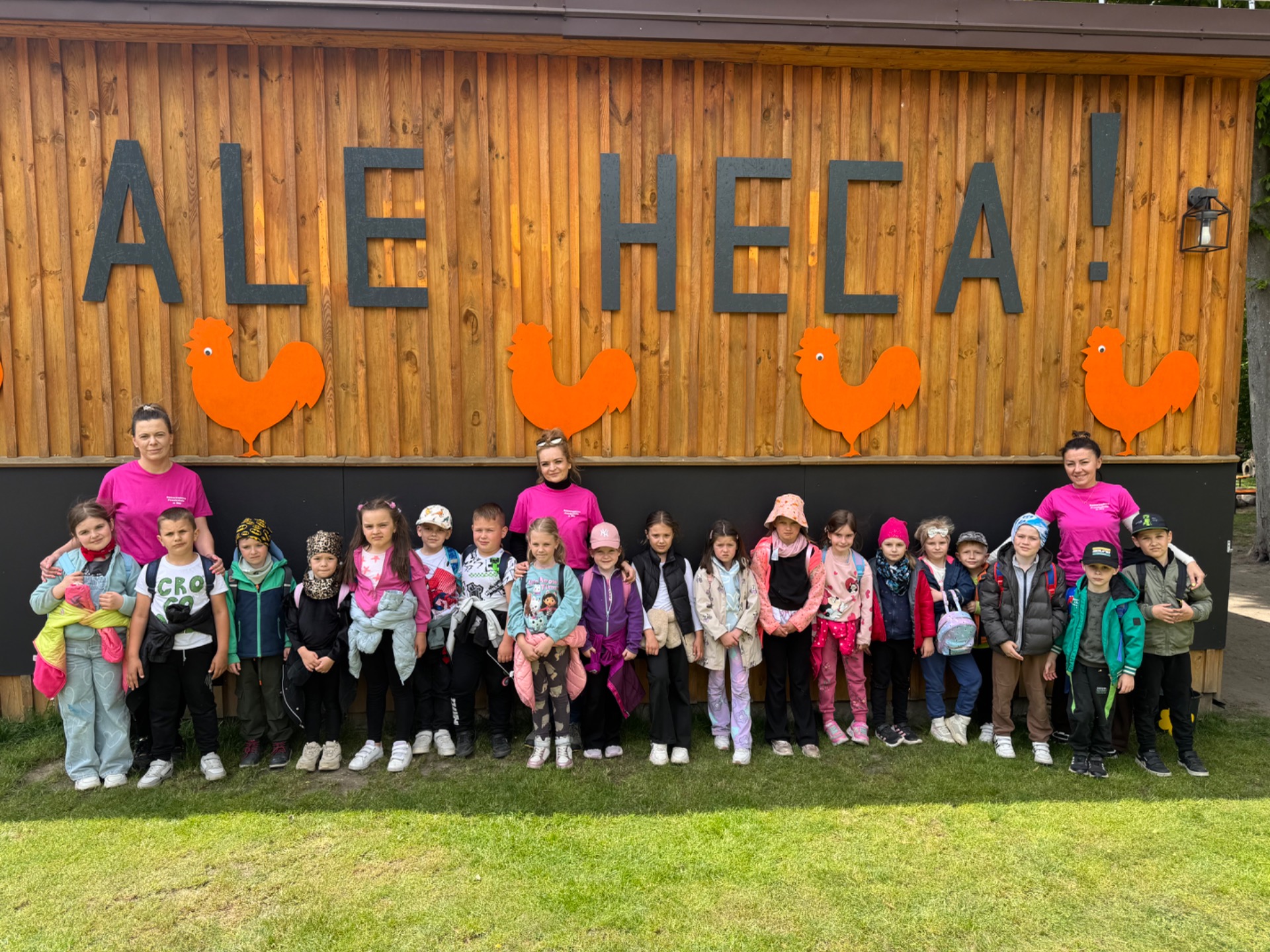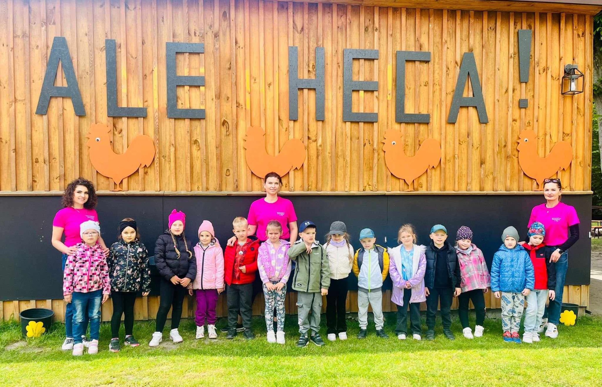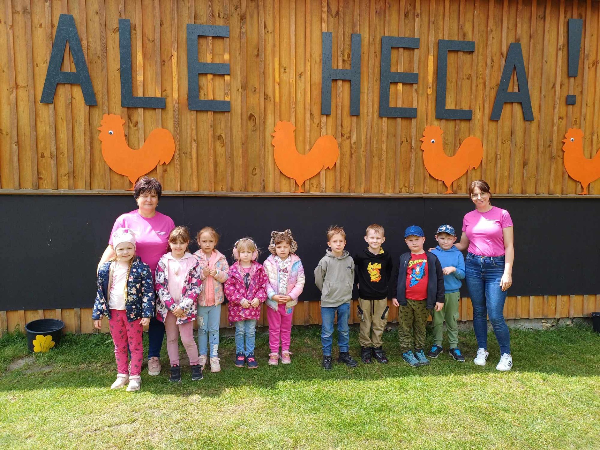 Dnia 12 i 14 maja 2025 r. dzieci 5- 6 letnie z naszego przedszkola wzięły udział w wycieczce do Zagrody Edukacyjnej „Ale Heca”. Celem wyjazdu było poznanie życia na wsi oraz zwierząt gospodarskich.